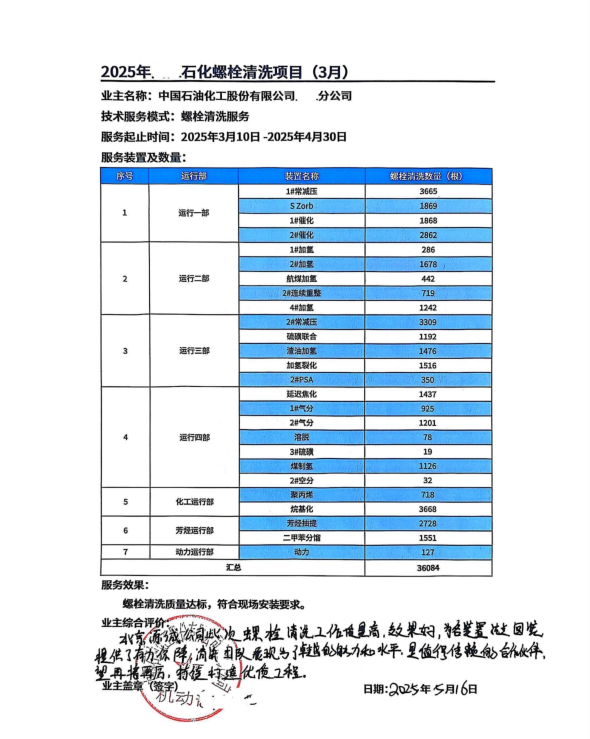 数字化定力矩服务每个环节都遵循严格的标准化规范,确保操作 “零偏差”、过程 “全透明”。显著提升了作业效率与质量,为装置大修 “一次性开车成功” 提供了可靠保障。