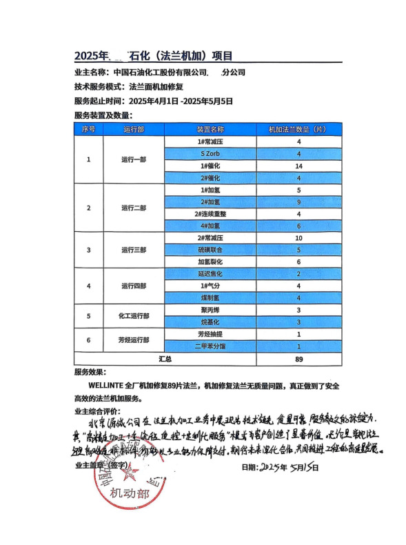 以 “高精度加工 + 全流程管控 + 定制化服务” 三位一体的服务模式,从损伤检测到方案定制,从加工实施到质量验收,全程管控,有效延长法兰使用寿命、降低设备泄漏风险,为业主节省大量时间与经济成本创造了显著的综合效益。